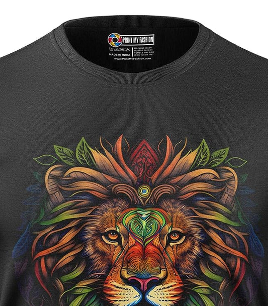 Regular Fit Round Neck Half Sleeves Lion Mandala Graphic Printed Men's T-Shirt (Black, S)